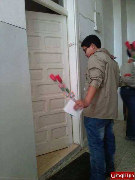 وزعت مجموعة كشافة ومرشدات نادي جبل النار الورود وبطاقات التهنئة على ربات البيوت والموظفات في نادي جبل النار بشارع بن رشد بمناسبة عيد الأم.