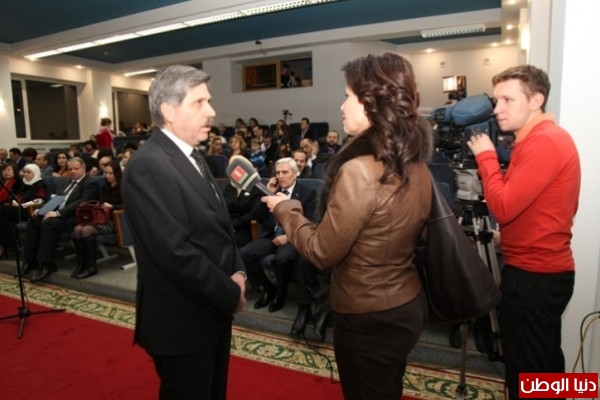 كما قدم السفير خالد عريقات هدية رمزية تحمل معاني كبيرة لرئيس الجامعة بوندر متمثلة بمجسم لمدينة القدس .