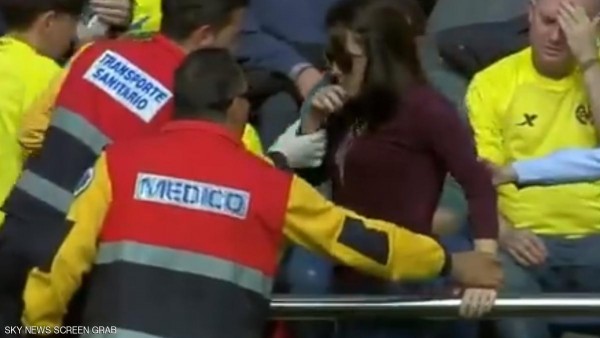 لكن التسديدة التي أخطأت المرمى أصابت هدفا آخر، بعدما اتجهت مباشرة صوب سيدة كانت تجلس بالمدرجات خلف مرمى فياريال.