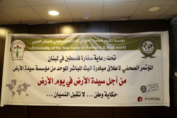 أطلقت سفارة دولة فلسطين في لبنان، في مؤتمر صحافي عقد قبل ظهر اليوم في قاعة الرئيس ياسر عرفات في مبنى السفارة - بئر حسن، مبادرة البث المباشر الموحد الذي تنظمه مؤسسة سيدة الارض لمناسبة "يوم الارض" تحت عنوان من "اجل سيدة الارض في يوم الارض حكاية وطن.. لا تقبل النسيان".