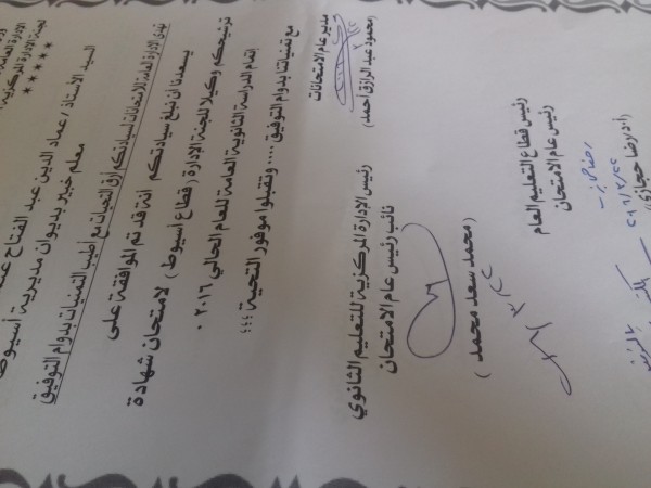 كما وافق الوزير على ندب" جمال محمد عبد الرحمن الشويخ "رئيسا للجنة الإدارة لامتحان الثانوية العامة, و"عماد الدين عبد الفتاح"وكيلاً للجنة الإدارة لامتحان الثانوية العامة.