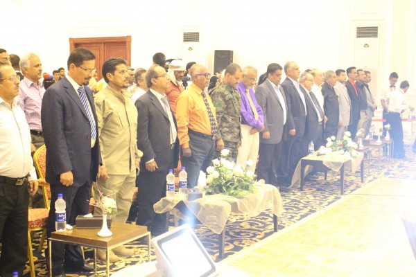 شهدت قاعة البتراء بفندق كورال بالعاصمة عدن صباح اليوم حفل كرنفالي وخطابي بمناسبة الذكرى الأولى لإعلان التحالف العربي وانطلاق عاصفة الحزم مارس 2016م تحت شعار (عدن ترفض الإرهاب ) حيث بدأت أولى فقرات حفل الكرنفال بآي من الذكر الحكيم ثم وقفة دقيقة حداد على أرواح الشهداء ثم كلمة السلطة المحلية والأمنية بمحافظة عدن ألقاها اللواء شلال علي شايع مدير عام شرطة عدن نيابة عن المحافظ اللواء عيدروس الزبيدي إليكم نص الكلمة..