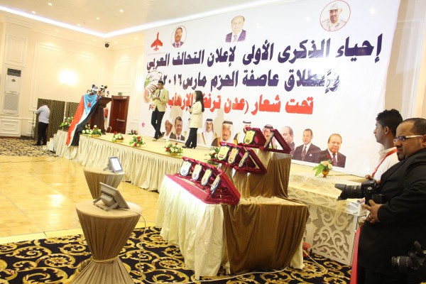 تحت شعار "عدن ترفض الإرهاب" عدن تحيي الذكرى الأولى لإعلان التحالف العربي وانطلاق عاصفة الحزم