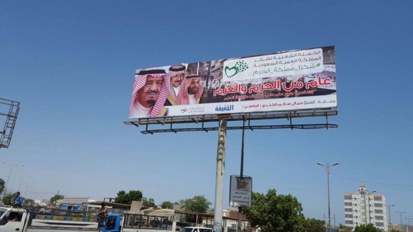 عدن.. إزاحة الستار عن لوحة عملاقة لقيادة المملكة العربية السعودية بعنوان "عام من الحزم والعزم"