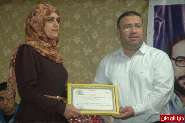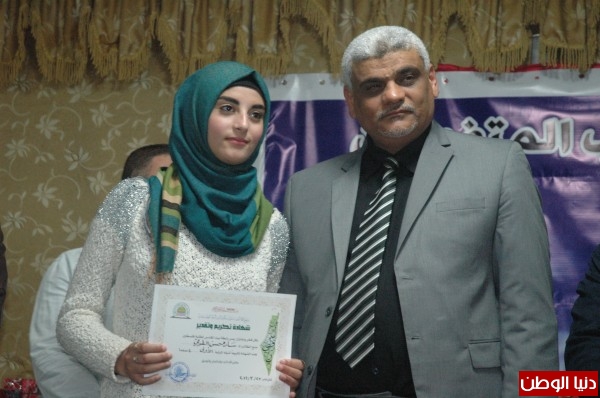 والقت كلمة الطلاب المتفوقين الطالبة سارة صالح هويدي قالت فيها، "إننا في هذه الأيام الصعبة التي يعيشها شعبنا في ضل الأوضاع الإجتماعية الصعبة والقاسية وتكالب العالم بأسره على قضيتنا فلسطين وحقنا التاريخي في أرضنا ومحاولاتهم لكسر إرادتنا وتحطيم كل آمالنا من خلال جرنا إلى مستنقع الجهل والتيه والتخلف العقلي مستخدماً الوسائل العديدة في ذلك، وأضافت: "من يريد أن يجعل شعبنا متخلف، نؤكد للجميع بأننا سنبقى شعلة العلم ومنارة الهدى في وجه الظلمات، وأن نبقى متمسكين بالعلم وبناء المستقبل الزائر لشعبنا وقضيتنا".