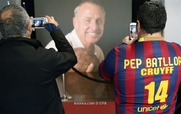 وشارك أكثر من 31 ألف شخص في تكريم كرويف خارج "كامب نو" معقل برشلونة، على مدار الايام القليلة الماضية، من خلال أكاليل الزهور ورسائل الوداع والعزاء.