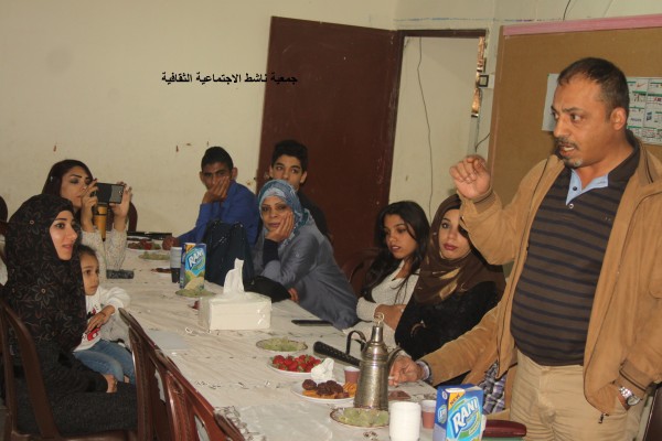 حيث تكلم رئيس الجمعية ناشط الدكتور ظافر الخطيب عن عطاءات الزميلة وإنجازاتها خلال الفترة المنصرمة متمنيا لها التوفيق بحياتها المستقبلية معتبرا بان الجمعية خسرت كادرا مهما من كوادرها.