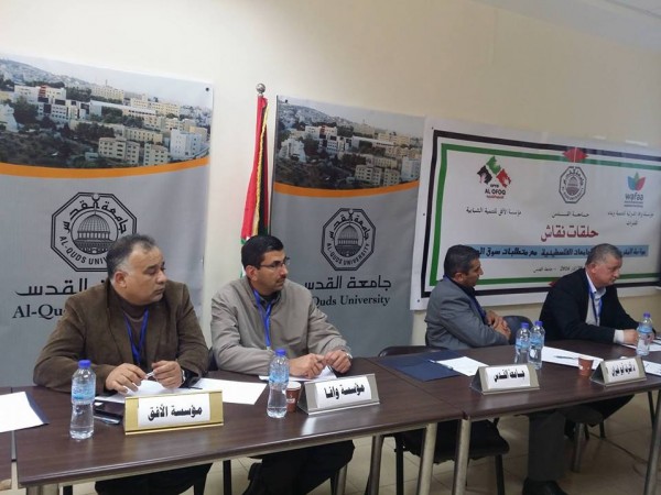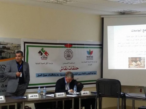عقدت كل من جامعة القدس ومؤسسة الافق للتنمية الشبابية ومؤسسة وافا للتنمية وبناء القدرات ورشة عمل جاءت تحت عنوان " مواءمة المخرج الاكاديمي للجامعات الفلسطينية مع متطلبات سوق العمل" وذلك هذا اليوم الاثنين الموافق 28-3-2016 في جامعة القدس .