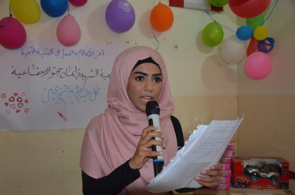 بعد كلمة ترحيبيه من الجمعية ، القتها سمر خليفة هنأت فيها الأمهات بيومهن والاطفال ،