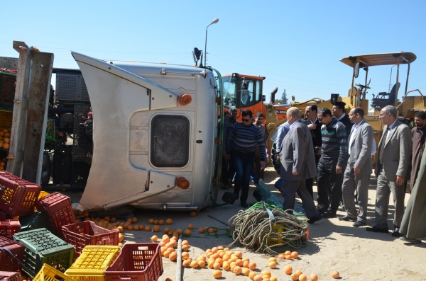 حرص اللواء ياسين طاهر محافظ الإسماعيلية، على متابعة حادث انقلاب إحدى الشاحنات الكبيرة المحملة بكميات من محصول البرتقال، أسفل الكوبرى العلوى بمركز ومدينة القصاصين الجديدة وتحمل لوحات معدنية برقم 38930 نقل شرقية.