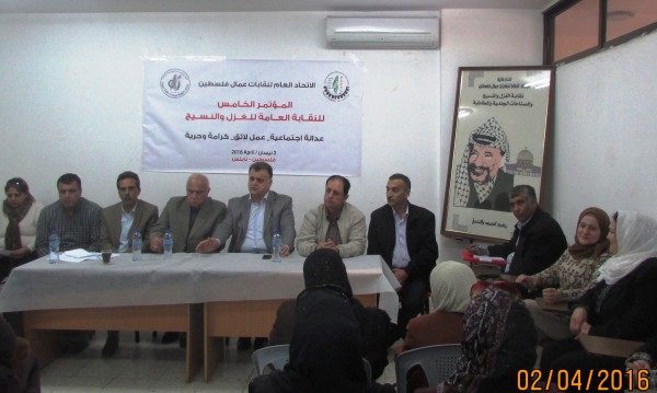 النقابة العامة لعمال الغزل والنسيج والخياطة الفلسطينية تعقد مؤتمرها العام الخامس
