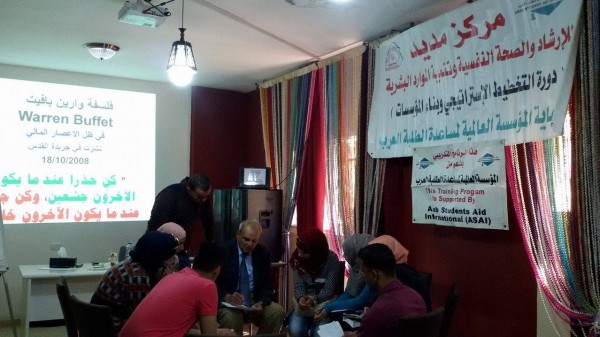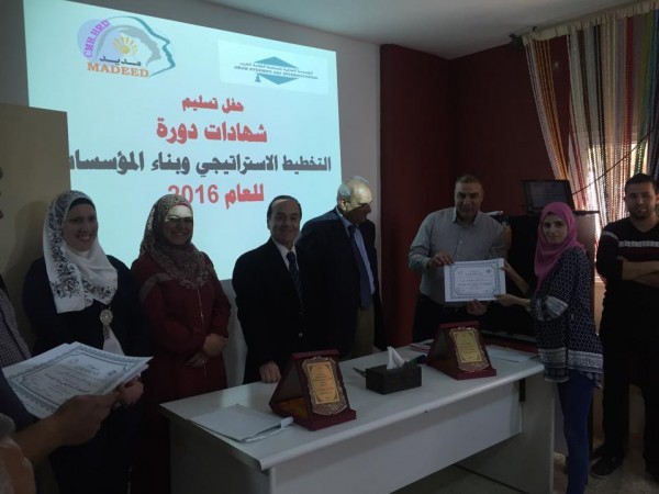 برعاية المؤسسة العالمية لمساعدة الطلبة العرب اختتمت جمعية مركز مديد بنابلس يوم أمس الأول اللقاءات التدريبية لدورة التخطيط الاستراتيجي وبناء المؤسسات الأهلية والتي شارك فيها 24 متدرب/ة منتدبين عن المؤسسات الشريكة مكتب عمل نابلس ومؤسسة الرؤية العالمية ونادي جبل النار ومؤسسة النيزك ومتطوعي جمعية مركز مديد ومجموعة من خريجي جامعتي النجاح الوطنية وجامعة القدس المفتوحة فرع نابلس.