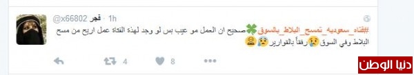أثارت صور وفيديو تداولها رواد مواقع التواصل الاجتماعي لسيدة تمسح بلاط السوق في السعودية الجدل ليتم تدشين هاشتاج "فتاه سعوديه تمسح البلاط بالسوق"