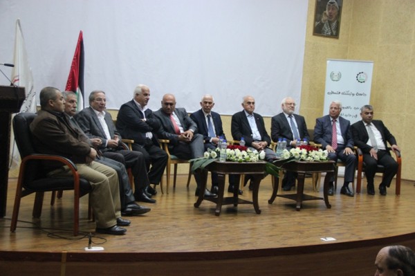 تحت شعار “بدناش انقسام” نظمت جامعة بوليتكنك فلسطين في رحابها وقفة جماهيرية تطالب بإنهاء الانقسام الفلسطيني وذلك بمشاركة السيد منيب المصري من التجمع الوطني لإنهاء الانقسام وحضور محافظ محافظة الخليل كامل حميد، محافظ محافظة بيت لحم جبريل البكري ومحافظ محافظة نابلس أكرم الرجوب، ورئيس وأعضاء المجلس التشريعي من حركتي فتح وحماس وممثلين عن كافة الفصائل الوطنية والإسلامية وأعضاء المجلس الثوري، ووجهاء عشائر محافظة الخليل، والفعاليات الأهلية والشعبية في محافظة الخليل والتجمع الوطني لإنهاء الانقسام وجامعة بوليتكنك فلسطين ورؤساء البلديات والغرف التجارية ومدراء مديريات التربية والتعليم في محافظة الخليل، ورئيس مجلس رابطة الجامعيين “رئيس مجلس أمناء جامعة بوليتكنك فلسطين” الأستاذ أحمد سعيد التميمي، وأعضاء مجلس رابطة الجامعيين، ورئيس الجامعة الأستاذ الدكتور عماد الخطيب ونوابه والهيئتين الأكاديمية والإدارية بالجامعة، وعدد كبير من ممثلي المؤسسات الحكومية والأهلية والمجتمعية في المحافظة.