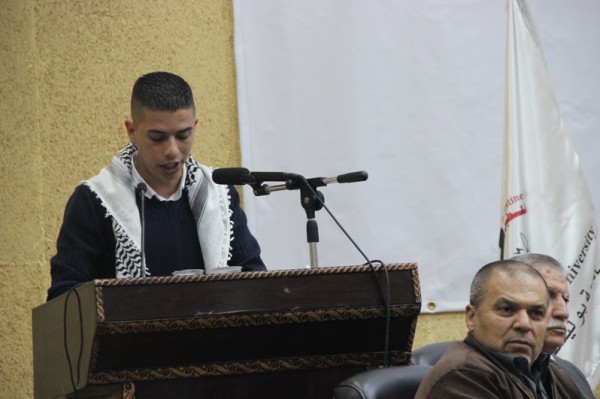 وتحدث رئيس مجلس اتحاد الطلبة وسيم الجمل بانّ حلم كل فلسطيني اليوم هو رؤية وطن موحد تحت راية واحدة مشيراً إلى أنّ مجلس اتحاد الطلبة في جامعة بوليتكنك فلسطين استطاع أن يحقق الوحدة الوطنية بين أطيافه مما انعكس على المجتمع المحلي الذي التف حوله .