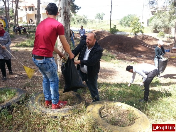 المركزالاجتماعي لتاهيل الشبيبه جنين يشارك بتنظيف حديقة السويطات