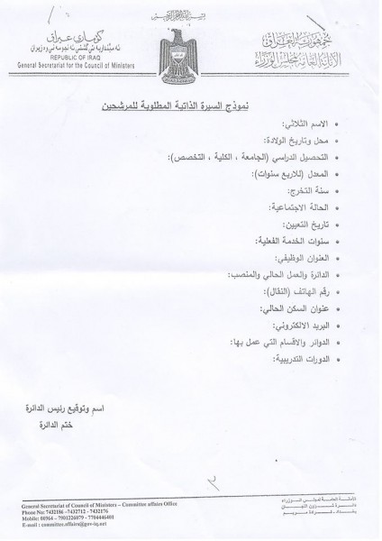 واشار الصويلي الى ان" الترشيح للدراسة يكون بكتاب رسمي معنون الى الامانة العامة لمجلس الوزراء بتوقيع الوزير او المحافظ او رئيس الجهة حصرا مع ارفاق السيرة الذاتية للمرشح ويحديد مسار تقديم المرشحين الى الجامعات من الامانة