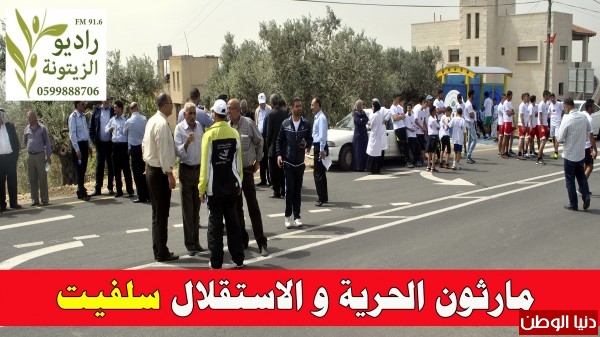 نظم مجلس الخدمات المشترك للتخطيط و التطوير - جنوب سلفيت مارثون رياضي تحت شعار مارثون الحرية الاستقلال بالتعاون مع مديرية التربية والتعليم في المحافظة، مديرية شرطة سلفيت، مديرية صحة سلفيت والهلال الأحمرالفلسطيني بمشاركة طلاب المرحلة الثانوية في مدارس تجمع مجلس الخدمات المشترك - جنوب سلفيت (سلفيت وضاحيتها خربة قيس، فرخة، اسكاكا وياسوف).