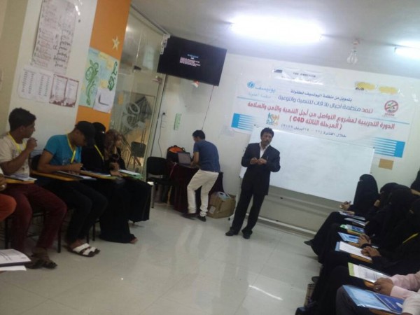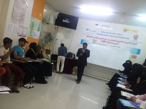 دشنت اليوم منظمة أجيال بلا قات للتوعية والتنمية بتعز بالشراكة مع منظمة اليونيسيف للطفولة البرنامج التدريبي ضمن مشروع التواصل من أجل التنمية والأمن والسلامة العامة.