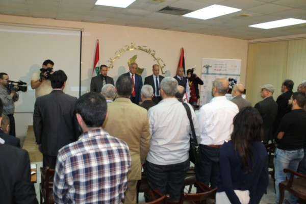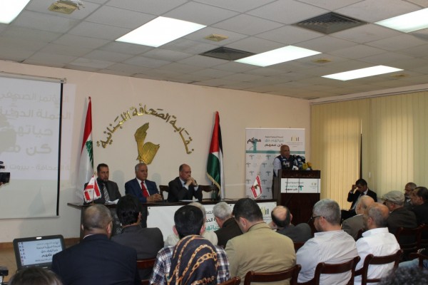 بعد تلاوة النشيدين اللبناني والفلسطيني كانت كلمة نقيب الصحافة الأستاذ عوني الكعكي ألقاها بالنيابة عنه الأستاذ فؤاد الحركة مؤكداً على التضامن اللبناني المطلق مع القضية الفلسطينية عموماً وقضية الأسرى على وجه الخصوص.