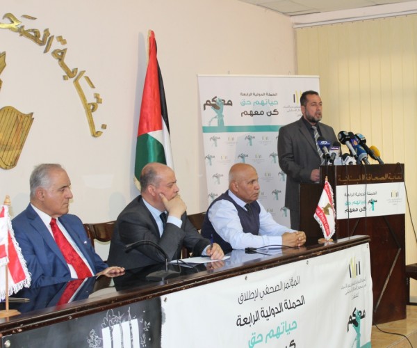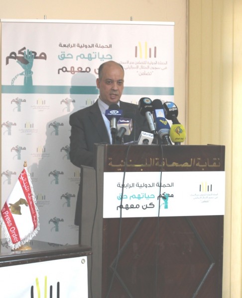 عقدت الحملة الدولية للتضامن مع الأسرى في سجون الاحتلال الإسرائيلي "تضامن" مؤتمراً صحافياً اليوم الثلاثاء، في نقابة الصحافة اللبنانية أعلنت فيه إطلاق حملتها التضامنية الرابعة تحت شعار "حياتهم حق... كن معهم"، بحضور ممثلين عن الفصائل الفلسطينية والأحزاب اللبنانية ومنظمات حقوق الإنسان ومؤسسات المجتمع المدني.