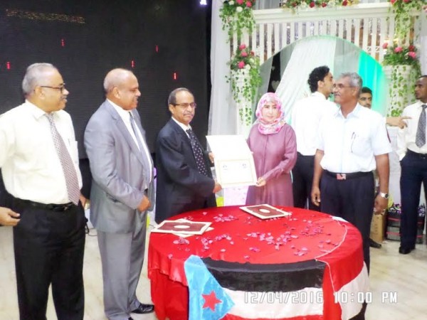وشهد الحفل قيام الدكتور/حسين باسلامة رئيس جامعة عدن، والدكتور/صالح محمد مبارك عميد كلية الهندسة، والدكتورة/هدى علي علوي الحريري المسئولة التنفيذية لمؤسسة أحمد عبدالحكيم السعدي للتفوق العلمي، بتكريم الطلاب والخريجين الأوائل، بشهادات التقدير.