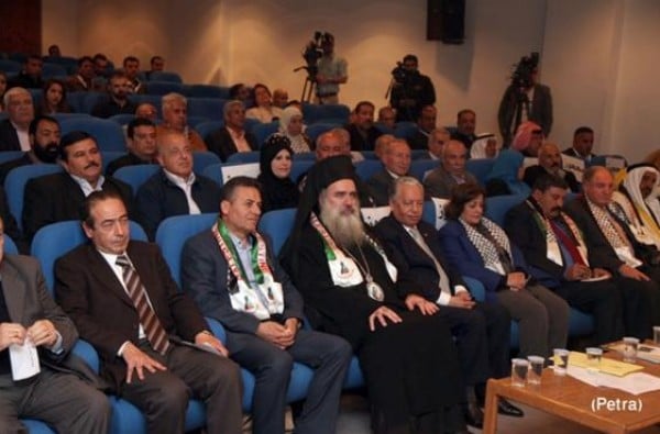 وقد افتتح المؤتمر العين نايف القاضي بأن موقف الهاشميين والأردنيين تجاه القضية الفلسطينية لم يكن وليد اليوم. وأن هناك تلاحم صادق ونضال مشترك بين الشعبين ؛ كما أشاد بجهود الحكومة الاردنية ووقوفها الى جانب الشعب الفلسطيني ضد اعتداءات الحكومة الإسرائيلية على المقدسات الإسلامية والدينية في القدس الشريف.