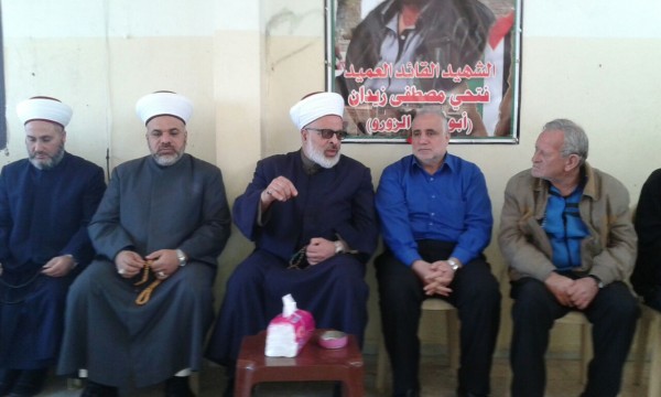 قام وفد من بلدة المية ومية القريبة من مدينة صيدا بتقديم واجب العزاء بإستشهاد العميد فتحي زيدان في قاعة فيصل الحسيني في مخيم المية ومية .