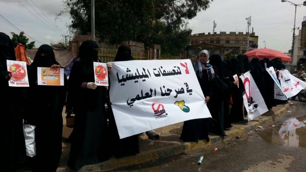 وفي بيان للوقفة استنكر طلاب وطالبات جامعة صنعاء التمادي الذي تمارسه الجماعات بحق العملية التعليمية في الجامعة والتعسفات الممنهجة بحق الأكاديميين.