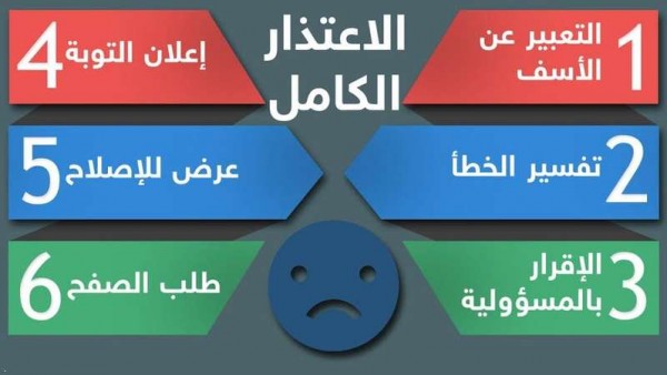 وحسب موقع "سكاي نيوز عربية"، استنادًا إلى دراسة جديدة، قال باحثون في جامعة أوهايو إن هناك 6 عناصر أساسية، لتقديم اعتذار أكثر صدقية وأسهل في القبول.