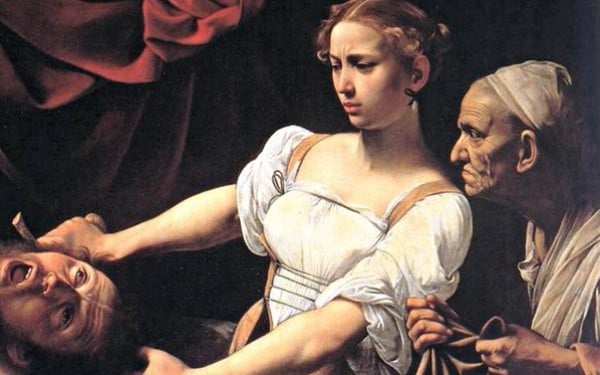 الرسمة تجسّد قصة يهوديت من العهد القديم والتي قطعت رأس الجنرال الأشوري هولوفرنيس