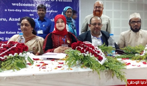 كما استضافتها الندوة الدولية " نهرو وآزاد والدول العربيّة والفارسيّة"كضيفة شرف،وذلك في أحضان جامعة كلكتا العريقة،حيث قالت في معرض تقديمها لورقة عملها،وإدارتها لأكثر من جلسة في النّدوة بعد أن قدّمها للجمهور وعرّف بها وبمنجزها مدير المؤتمر ورئيس قسم اللغة العربيّة في الجامعة الأستاذ الدكتور إشارت علي ملا :" إنّنا هاهنا نجتمع هنا لننطلق من هذا المؤتمر نحو المزيد من إنسانيتنا وتواصلنا وتعاوننا الإنسانيّ المنشود الذي يقوم على عرى متينة من العلاقات التاريخيّة الأصيلة والطويلة والتّاريخيّة والمشرقة بين الهنود والعرب والفرس،وهو ثالوث قدّم كلّ واحد فيه للآخر الكثير من التقدّم والدّعم.بيننا أرث عملاق من التّاريخ المشترك،في ماضينا وأحلامنا ووجوهنا بل وقد يكون في دماء الكثير منا تجري دماء الآخر،تلك القوافل لا زالت تسعى بيننا،أولئك العلماء والمبدعون والمبرّزون المشتركون يشكلون قاسماً عملاقاً خالداً بيننا،والحاضر القريب أو البعيد نسبياً جمعنا في الكثير من الظروف والمواقف والأفكار والرؤى والأحاسيس المشتركة والدّاعمة".