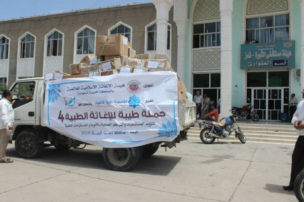 وتهدف الحملة إلى تزويد خمسة من المستشفيات والمراكز الصحية بمدينة تعز، بالأدوية والعلاجات والمستلزمات الطبية لتخفيف معاناة المرضى وضحايا الحرب والصراع.