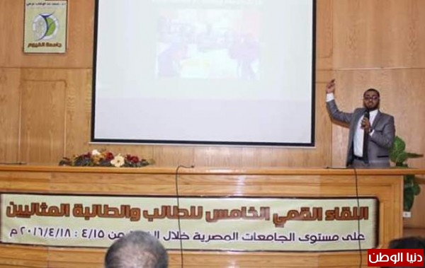 أعلن الدكتور عصام محمد زناتي نائب رئيس جامعةأسيوط لشئون التعليم والطلاب عن فوز الطالب عبد الرحمن محمد عزت قطب بالفرقةالرابعة كلية العلوم بلقب الطالب المثالي في مسابقة الطالب والطالبة المثاليين علي مستوي الجامعات المصرية , والتي عُقدت هذا العام بجامعة الفيوم بالتعاون مع مشروعتطوير الأنشطة الطلابية في الفترة من 15 إلي 18 من إبريل الجاري , وذلك تحت رعايةالدكتور أحمد عبده جعيص رئيس الجامعة .