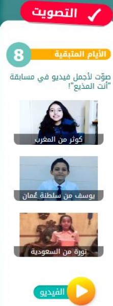 يدعو موقع تلفزيون ج المشاهدين للتصويت على أفضل فيديو لفقرة أنت المذيع في برنامج ج جواب الذي يذاع كل يوم سبت على تلفزيون ج ليحظى الفائز بتجربة التقديم التلفزيوني على الهواء مباشرة.