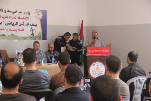 وحضر الماراثون المقدم رياض مطر نائب رئيس الاتحاد, والرائد هاني المدهون مدير الإعداد والتدريب, ولفيف من الرياضيين وممثلي وزارة الداخلية والوزارات الحكومية.