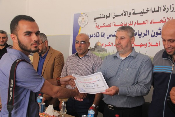 وجاء الماراثون الرياضي بعنوان "يا قدس إنا قادمون"، بمشاركة عشرات المتسابقين والرياضيين من أجهزة وإدارات وزارة الداخلية والوزارات الحكومية الأخرى.
