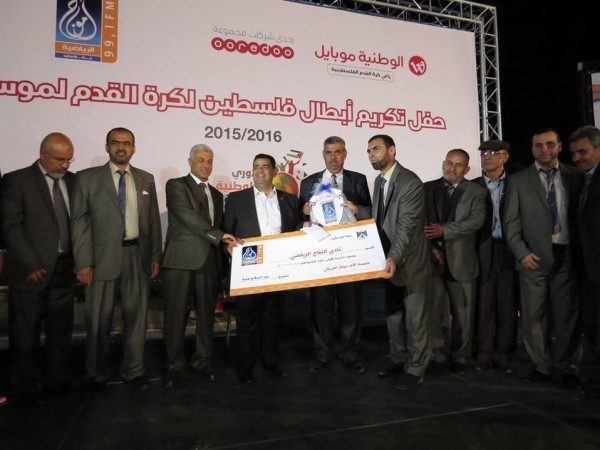كرمت مؤسسة أمواج الإعلامية ، مساء أمس الثلاثاء ، في فندق المشتل "الموفمبيك" غرب مدينة غزة أبطال فلسطين لكرة القدم للموسم الرياضي 2015/2016 .