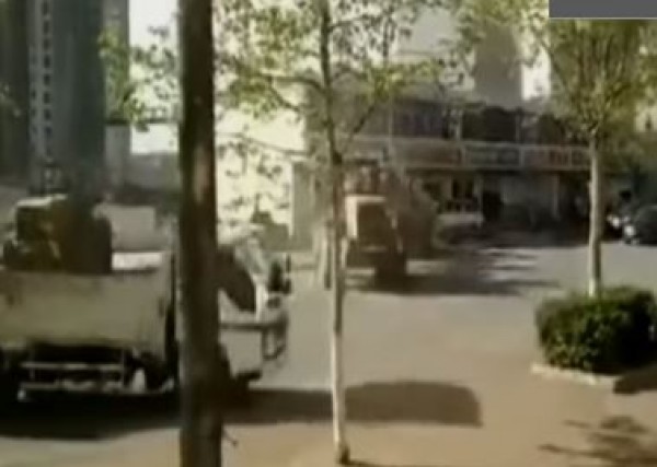 وصور شاهد عيان ذلك الاشتباك بإشراك ما لا يقل عن 6 بلدوزرات في العراك.