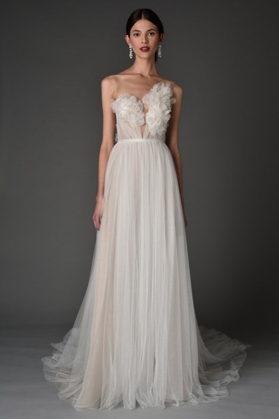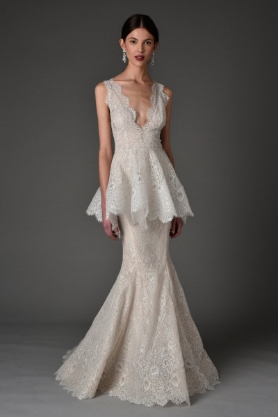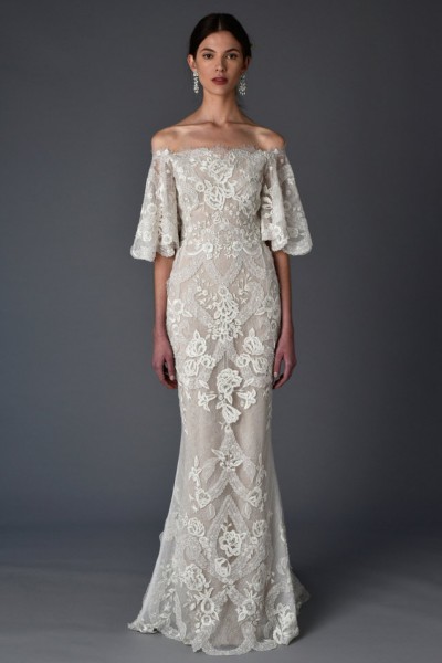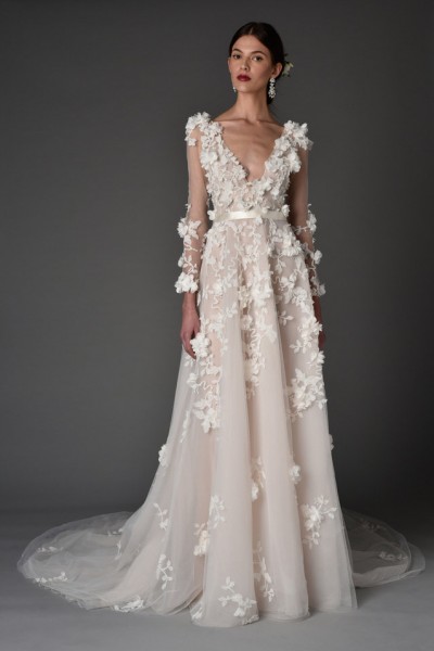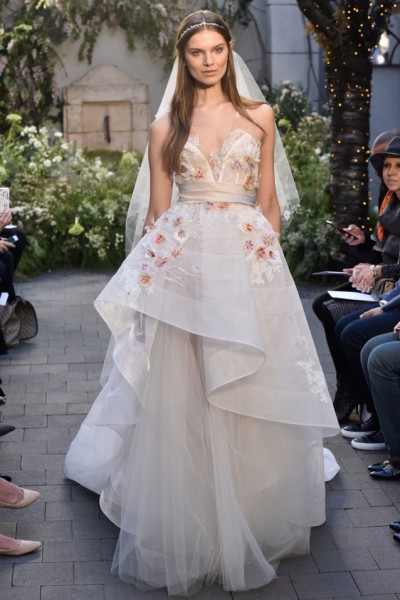 تعرف فساتين زفاف ماركيزا بسحرها الأخاذ الذي يخطف الأنفاس، وهذا ما كان واضحا بقوة في فساتين زفاف ربيع 2017. حيث ظهرت أكثر من صيحة فيها، فمثلا ستجدين فساتين زفاف بصيحة البيبلوم الممزوجة بستايل ذيل السمكة، كذلك أيضا الأزهار الكبيرة والبارزة التي زينت كثير من فساتين زفاف مجموعة ماركيزا لربيع 2017. ستجدين موديلات رائعة من فساتين الزفاف بالأكتاف المتساقطة، وأخرى منفوشة للغاية باللون السيمون، لتكسر بذلك فكرة فستان الزفاف الأبيض.