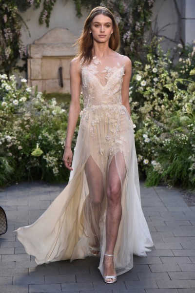 سعدت كثيرا لإطلاق المصمم اللبناني إيلي صعب أول مجموعة فساتين زفاف لعروس ربيع 2017. مجموعة فساتين زفاف إيلي صعب لا تخلو من لمساته الخاصة والمتميزة، فشكل فساتين زفافه من موديلات مختلفة ضمت البسيطة للغاية والتي يزينها حزام فقط، واحتوت المجموعة على موديلات تجمع بين الدانتيل في نصفها العلوي والشيفون في الجزء السفلي من فستان الزفاف.