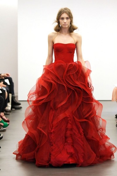من القواعد الأخرى التي بادرت، مصممة فساتين الزفاف العالمية، فيرا وانغ بكسرها عندما ابتكرت مجموعة من فساتين الزفاف الملونة التي يمكن ارتدائها للحصول على إطلالة مختلفة وغير تقليدية. إذا كنت تبحثين عن فستان ملون ليوم زفافك، فيمكنك استلهام إطلالتك من فساتين الزفاف التي طرحتها فيرا وانغ والتي تنوعت في ألوانها بين الوردي والفوشيا والأحمر والأسود.
