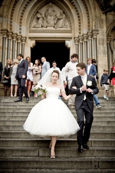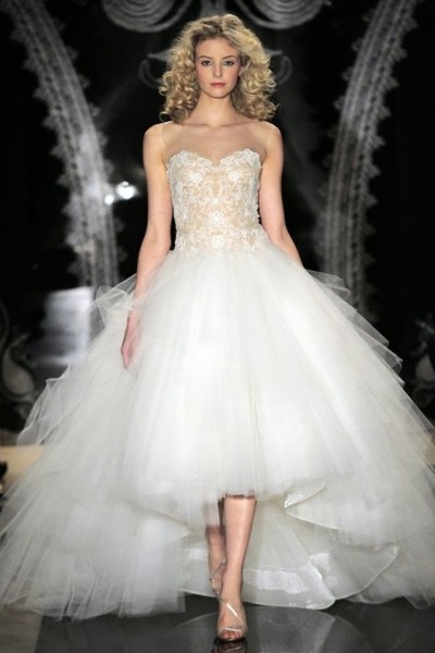 على عكس الماضي، أصبحت فساتين الزفاف القصيرة تتربع على أحدث صيحات موضة فساتين زفاف ٢٠١٤ - ٢٠١٥ وقد شاع انتشارها في فصل الصيف. إذا كنت ترغبين في ارتداء فستان زفاف قصير ولكنك مازلت ترغبين في الاحتفاظ باللمسة الكلاسيكية في إطلالتك، جربي اختيار فستان زفاف قصير من الأمام وطويل من الخلف مع مراعاة اختيار حذاء أنيق ليمنح إطلالتك قدرا من النعومة والجاذبية.