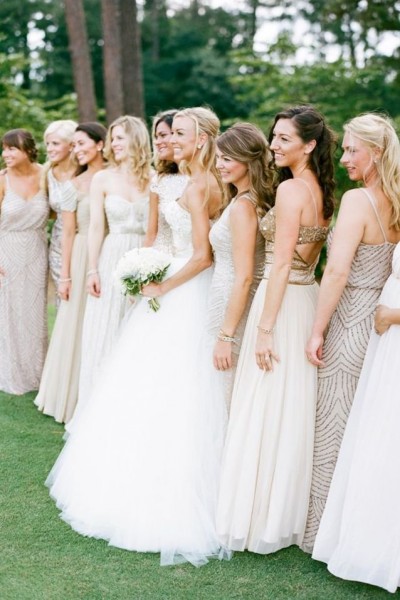 تتمنى كل عروس من صديقاتها أن يساعدونها على التقاط أفضل الصور الفوتغرافية ولكي يتحقق ذلك يظنون بأنه يجب عليهن ارتداء ذات الفستان. ولكن فكري قليلا في الأمر، فإن موديل الفستان الواحد قد لا يتناسب مع جسم كل فتاة وحجمها وستايلها الخاص، لذا من الأفضل أن تتركي لهن حرية اختيار موديل الفستان الذي يعزز قوامهن مع الاستقرار على ألوان محددة مع مراعاة أن تكون متناسقة وتكمل بعضها البعض وأن تكون نهايات كل الفساتين متماثلة أي تكون بنفس الطول.