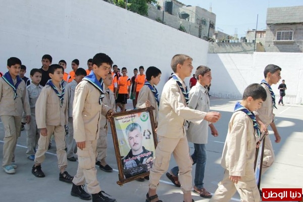 صوت الأناشيد التي تتحدث عن بطولات الأسرى تدوي بصوت جهوري بالإضافة لمسير أطفال من فريق للكشافة وطبول تقرع وجو حماسي وهتافات المشجعين .