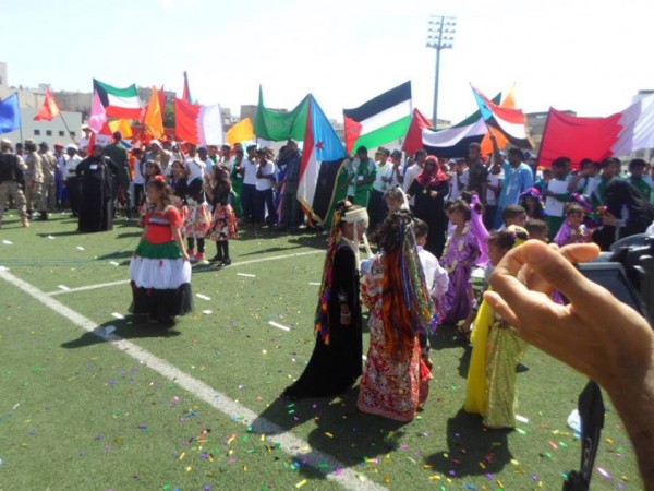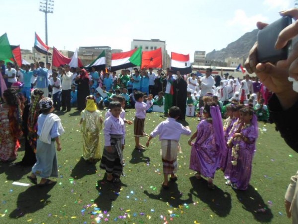 وكان طلاب وطالبات مدارس عدن والفرق الكشفية قد قدموا عروضا احتفائية رائعة شاركت فيها فرقة الجمالة في عرض ادهش الجميع رافعين الاعلام الوطنية لدول التحالف ومرددين الهتافات المعبرة عن المناسبة وما تحمله من معان سامية .