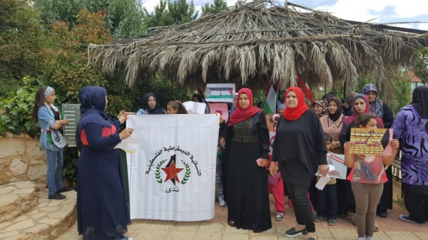 نظمت النسائية الديمقراطية الفلسطينية ( ندى ) فرع صور اليوم مسيرة جماهيرية حاشدة في بلدة مارون الراس الجنوبية دعما للانتفاضة الباسلة في القدس والضفة الفلسطينية بمشاركة ممثلات عن الهيئات النسائية الفلسطينية وحشد غفير من نساء مخيمات صور وانتهت باعتصام ، رفعت خلاله الاعلام الفلسطينية ورايات النسائية وشعارات تؤكد على حق شعبنا بالعودة الى مدنه وقراه التي هجر منه.