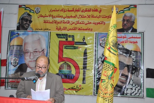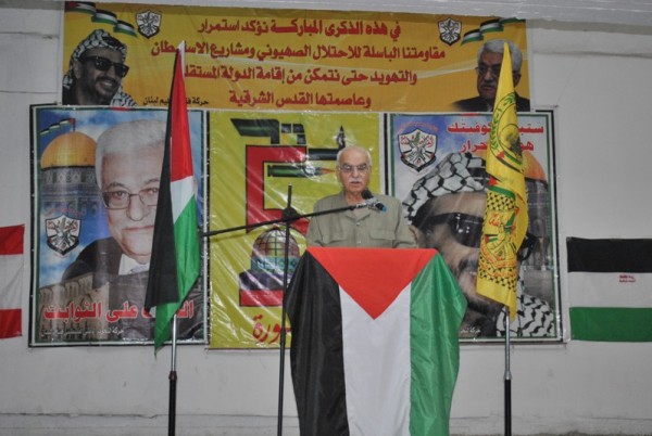 وأشار إلى أن مخيمات اللجوء عناوينُ وطنٍ زرعتهَا حركة "فتح" فينا فأنبتت مشروع وفاء آمنت به الأجيالُ الفلسطينية المتعاقِبة، منوّهاً إلى أنّ حركة "فتح" أخرجت فلسطين وشعبها من ملف اللجوء والمساعدات والخيَم والأرقام في سراديب وكالة الأونروا إلى الهوية الوطنية المستقلّة، ورأى أن السِّلم بدأ من فلسطين والحرب تندلع من فلسطين مؤكّداً أن "الوحدة الوطنية كانت وستبقى الأغلى مِنّا جميعاً وسنبقى متمسّكين بهذه الوحدة طريقاً للخلاص من الاحتلال الغاصب والجاثم على صدور شعبنا".
