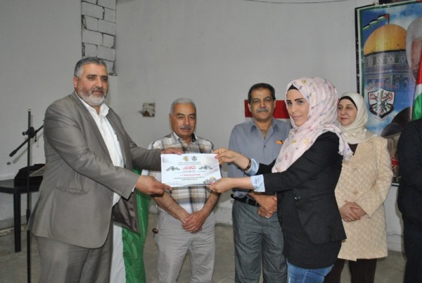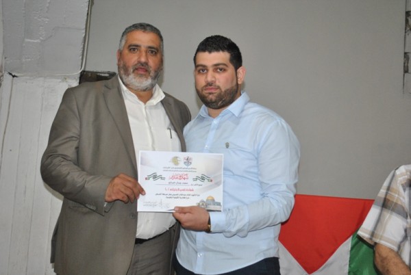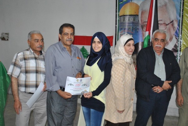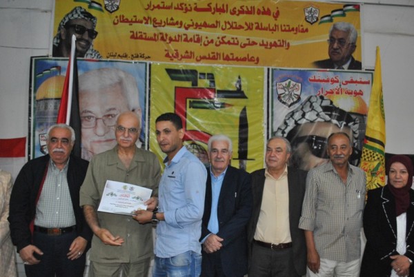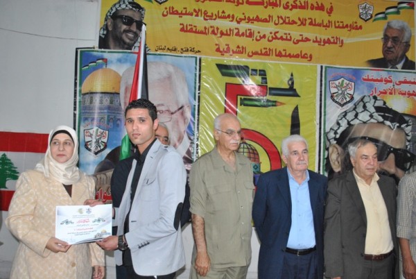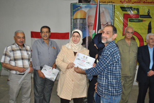 وبعد وصلة رقصات فلكلورية أدّتها فرقة القدس، وزَّع أمين سر وأعضاء قيادة الإقليم وقيادة حركة "فتح" في لبنان شهادات التقدير على خرّيجي الدورة الكادرية التنظيمية.