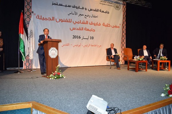 وقال أ.د. أبو كشك: " إنه لشرف كبير لنا في جامعة القدس، أن يقيم أ. الشامي كلية الفنون و الجماليات في حرم الجامعة الرئيس، وأن يشرف شخصياً على تجهيزها، وأن يتابع بنفسه كافة مراحل الإنجاز على النمط المعماري الفريد المتميز لكلياته الجامعية في الولايات المتحدة الأمريكية، وكوريا الجنوبية، وأن يتابع سير العمل فيها وتمكينها من أداء دورها ورسالتها التعليمية على أكمل وجه". فيما أشار رجل الأعمال أ. فاروق الشامي إلى أن رغبته بتقديم الدعم لإنشاء هذه الكلية نبعت من إيمانه بواجبه تجاه وطنه فلسطين، للمساهمة في تطوير الاقتصاد الفلسطيني من خلال تحسين المستوى التعليمي للشباب، وتطوير قدراتهم ومهاراتهم، ونقل تجربته وخبراته في الولايات المتحدة الأمريكية إلى الشباب الفلسطيني، مؤكداً أ. الشامي على أن العمل في شركة فاروق سستمز قائم على التدريب والتعليم الأكاديمي والمهني. ووضّح د. بديع السرطاوي، نائب الرئيس لشؤون البحث والإبداع والتطوير، بأن كلية فاروق الشامي للفنون الجميلة ستقدم برامج بكالوريوس في العناية بالجسم، وأن معظم مساقاتها تطرح في كليات العلوم، والصيدلة، والطب، والمهن الصحية، والتسويق، إضافةً لمساقات المهارات،